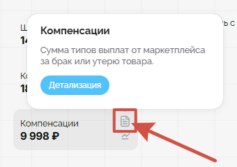 Детализация доступна для метрик, рядом с которыми отображается соответствующий значок.